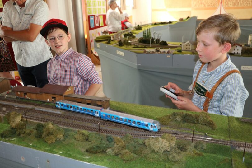 Zum zweiten Mal stellten die Eisenbahnfreunde Chiemgau ihr großes Geländemodell der Eisenbahnen zwischen Aschau, Prien, Rosenheim, Bad Endorf und Obing in der Aschauer Schule vor. Wenn es auch nur Ausschnitte des großen Modells waren, so konnten sich die Besucher die Restlichen Bauteile gut vorstellen. Die Eisenbahnfreunde sind mit ihrem gesamten Inventar im alten Bahnhof untergekommen und konnten auch in diesem Jahr einen Teil der großen Anlage in der Aula der Schule aufbauen und den Besuchern vorführen.