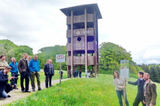 „Unsere zauberhafte Landschaft ist kleinparzelliert und dünnstrukturiert, Corona hat den Freizeitdruck erhöht, nicht selten, dass aufgeschreckte Rehe tagsüber auf der Straße überfahren werden – all dass muss es uns wert sein, unsere Wildtierwelt und unser Naturjuwehl für die nächsten Generationen zu erhalten“ – so Wolfgang Bachleitner mit seinen jahrelangen Erfahrungen als Jagdpächter auf der Ratzingerhöhe. Gerade dort hat der von der Rosenheimer Landesausstellung an die Gemeinde Rimsting abgegebene Aussichtsturm negative Entwicklungen gestartet. „Partys bis zum frühen Morgen, Müll in den Wiesen und Unterwegssein abseits der Wege, das sorgt für Sorgen“ – so der Jäger, dem auch Landwirt Florian Mayer beipflichtete. Aufgrund der unguten Situation machte sich Dr. Bachleitner an ein Konzept und stieß dabei auf die Salzburger Initiative „Respektiere Deine Grenzen“ und auf die thematische Unterstützung der Bayerischen Staatsregierung. Dabei und bei der persönlichen Kontaktaufnahme mit den Freizeitnutzern stellte er fest, dass rund 70 Prozent der Freizeit- und Landschaftsnutzer nicht wissen, was sie der Natur und vor allem der scheuen Tierwelt antun, wenn bestimmte und grundsätzliche Regeln nicht eingehalten werden.
