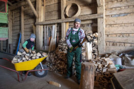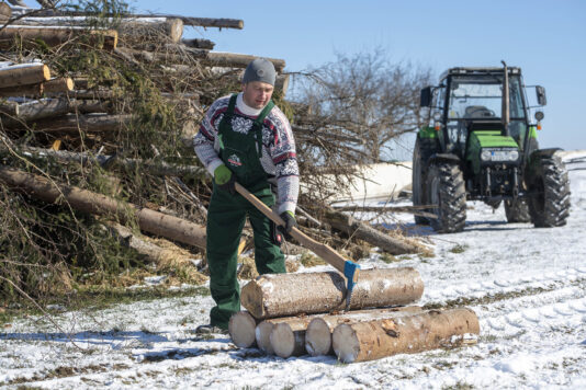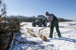 Während im Sommer die Heu-, aber auch Soja- und Maisernte bei den Ramstetters ansteht, ist im Winter Zeit für Reparaturarbeiten an den Schlackensteinmauern am Haus und natürlich für die Waldarbeit. Die Holzernte im Winter schützt dabei Boden und Bäume vor Schäden. Im Winter haben die Bäume zudem ihre „saftarme“ Zeit und das dann geschlagene Holz hat eine bessere und langlebigere Qualität.
