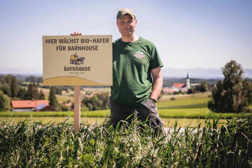 Getreide hatten die Heindls schon immer angebaut, jedoch mehr als Futtergetreide für die Kühe. Seit 2015 baut Josef neben Weizen, Triticale, Gerste, Dinkel und Mais auch Hafer an – Bio-Speisehafer im Vertragsanbau für Barnhouse. Inzwischen werden jährlich auf ca.3,3 Hektar Bio-Hafer angebaut und im Sommer dann rund 5 Tonnen/Hektar geerntet und an Barnhouse geliefert. Jetzt im Herbst ist das erste daraus hergestellte Müsli bei Barnhouse „vom Band“ gegangen.