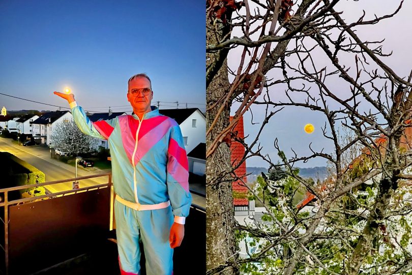 In der Regel spielt der Mond mit den Menschen, oft sind die Einflüsse gar des Vollmondes mit vielerlei Auswirkungen auf das Empfinden der Leute zu spüren – da ist es mal ganz heiter, wenn es umgekehrt ist wie zum Beispiel in diesen Ostertagen am Bodensee, als Armin Mühle-Fink versucht, den Mond mit seiner Hand einzufangen. Das Bild hat im übrigen Stefan Mühle eingefangen.