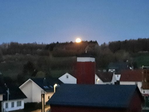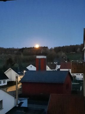 Fast könnte man bei diesen Aufnahmen meinen, es handelt sich um einen schönen und stillen Sonnenuntergang. Aber nein, die Bilder zeigen den Untergang des Mondes am heutigen Montag, 26. April um 5.30 Uhr hinter dem Ort Hasselbach in der Hochtaununs-Gemeinde Weilrod. Mit diesem Bild wünschen wir den Leserinnen und Lesern der Samerberger Nachrichten eine gute und gelingende Woche.