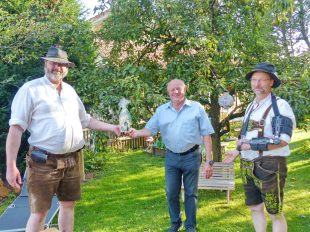 Zu seinem 65. Geburtstag gratulierten die Eggstätter Moosböllerer dem neu gewählten Eggstätter Bürgermeister Christian Glas mit einem Böllersalut. Christian Glas ist ein Schütze seit seiner Kindheit. Er übernahm den Vorsitz der Jungschützen schon als 19-jähriger und trat damit in die Fußstapfen seines Vaters. 30 Jahre war Christian Glas Erster Schützenmeister. 15 Jahre darüber hinaus Zweiter Gauschützenmeister im Schützengau Chiemgau-Prien, dort ist er Ehrenmitglied. Bei sommerlichem Wetter bedankte sich der Jubilar bei den Moosböllerern mit einem gut gekühlten Getränk.