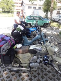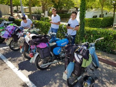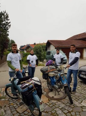 Wir 4 Spezln, die Mopedbuam Chiemgau, san letztes Jahr auf die leicht verrückte Idee gekommen, mit unseren oidn 50er Mopeds von Atzing bei Prien bis zum Gardasee zu fahren. Der grobe Plan war: Start am 12.06.2019, zwei Tage Hinfahrt, Urlaub am Campingplatz in Bardolino und dann wieder zwei Tage Heimfahrt. Unsere Fahrzeuge, zwei Zündapps (Hötzelsperger Andi, Schlosser Michael), eine Simson (Hötzelsperger Martin) und eine DKW (Baumert Manuel) warn bis zum Vorabend fahrbereit und unser Gepäck in Form von jeweils zwei Satteltaschen und einem Rucksack war fest am Gepäckträger der Mopeds verzurrt. Der Wetterbericht hat für die Hinfahrt zwar ned ideal angesagt, aber ein kurzer Blick ausm Fenster am Tag der Abfahrt hat uns wieder Mut gmacht.
