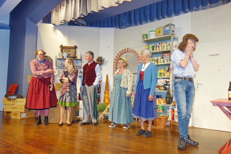 Und die Liste der verdächtigen Personen wird mit dem sonderlichen Dorfgrattler Buckl (Florian Pellhammer) und der arroganten Ludmilla, Schwester des Gummistiefelmännchens (Maria Schmuck), noch länger. Aber immer mucksmäuschenstill sein, sonst scheucht man den Mörder auf! Spaßig, mitreißend, turbulent und mit vielen überraschenden Aspekten, amüsierten sich die Zuschauer köstlich bei diesem bayerischen Wirtshauskellerkrimi. Und Max Weiß, der Regie führte, sollte bei seiner Ansage zu Beginn vollkommen Recht behalten mit seinem Ausruf: „Besonders stolz sind wir auf unsere beiden jungen Spieler Samuel Bürger und Florian Pellhammer, die heute zum ersten Mal auf der Bühne stehen.“ Beide machten ihre Sache großartig. Als kleines Schmankerl obendrauf konnte das Publikum bis zur zweiten Pause mitraten, wie die Lösung des Falles aussieht. Die von zehn richtigen Antworten ausgeloste Gewinnerin durfte eine Theatertasche mit Leckereien entgegennehmen. Für die traditionelle Premiere an Weihnachten kündigte Max Weiß das Stück „Außer Kontrolle“ an. Beide Theaterstücke werden dann wieder in den regulären Spielplan für die Wintersaison eingearbeitet