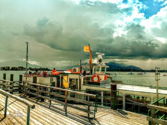 Auch wenn sich Wolken und Regen ansagen: am und auf dem Chiemsee entstehen immer wieder faszinierende Landschaftsbilder, die zur Freizeitgestaltung einladen.