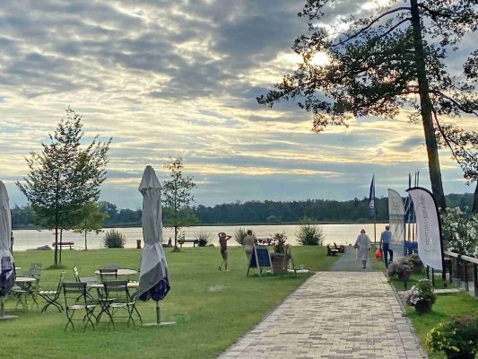 Ein beliebter morgendlicher Treff für Frühaufsteher und Wassergenießer ist das Schraml-Bad in Prien-Harras. Gerne werden vor Beginn eines Arbeitstages noch ein paar Runden im derzeit wohl temperierten Chiemseewasser gedreht um anschließend frisch ans Tagwerk zu gehen.