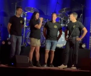 Gäste, die wie 1. Vorsitzende Andrea Matter sagte, mit einen riesen Applaus zu begrüßen sind, von links Markus Reiterberger, Andrea Matter, Markus Ober und Obings Bürgermeister Sepp Huber
