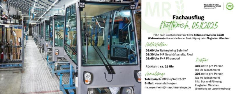 Der diesjährige Fachausflug, organisiert vom Maschinering Rosenheim, führt zur Firma Fritzmeier GmbH & Co.KG mit einer Führung durch die Produktion und Herstellung u.a. von Fahrerkabinen.