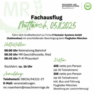 Anmeldung möglich unter der 08036/94332-30 oder per E-Mail unter veranstaltungen.mr.rosenheim@maschinenringe.de