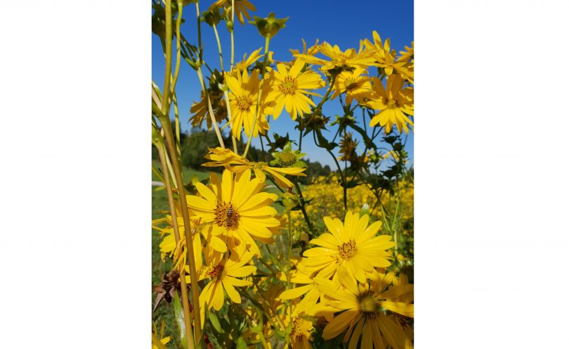 Die Pflanze gehört in die Familie der Korbblütler und wird auch „Becherpflanze“ genannt. An den Ansätzen der Blätter sammelt die Silphie Tau- und Regenwasser, wovon sich Insekten aller Art bedienen. Zudem blüht die Kultur von Anfang Juli bis September in strahlendem gelb und dient als Narungsquelle. So ist ein Silphien-Feld ein wahres Paradies für Bienen, Schmetterlinge und allerlei Insekten. Neben den Leistungen für die Insektenwelt bietet die Dauerkultur auch weitere Umweltleistungen. Ihr dichtes Wurzelwachstum fördert die Bodenbiologie, das Bodenleben und somit die Humusbildung. Dadurch hat sie eine positive Wirkung auf das Grundwasser im Hinblick auf das Nitratrückhaltevermögen. Davon abgesehen ist sie einfach eine echte Augenweide in unserer Landschaft.