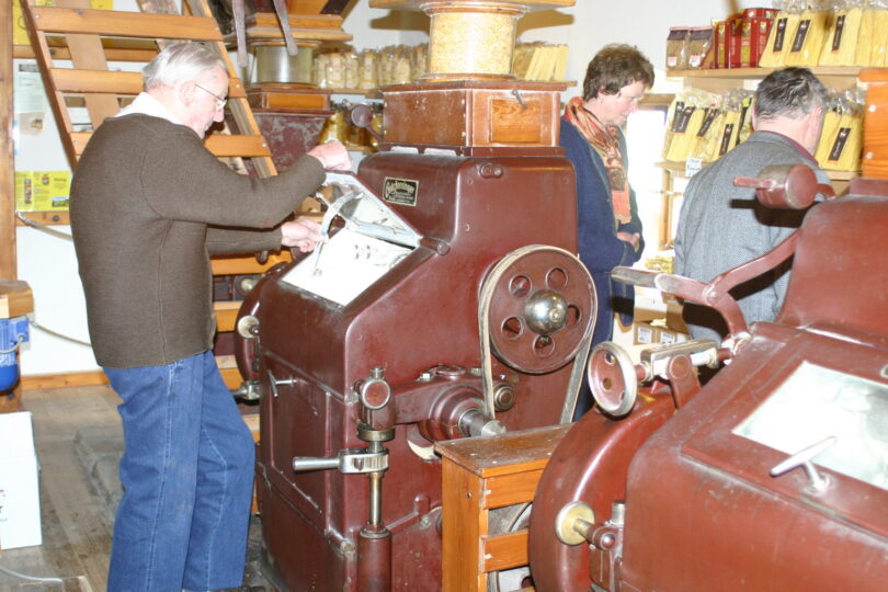 Unterhaltung, Einkauf, Verkostung und Gewinnspiel vermitteln einen informativen und unterhaltsamen Nachmittag. Mit den Fotos zeigt Alt-Müllnermeister Georg Wachinger den Besuchern die Technik einer Mühle. Die Zufahrt ist ausgeschildert