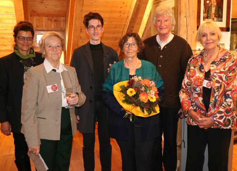 – Ausstellungseröffnung in Sachrang: Die Vorstandschaft des Museumsvereins Müllner Peter von Sachrang und die Familie Fleischmann haben gemeinsam die Sonderausstellung in der Alten Schule in Sachrang zusammengestellt. Von links: Beirätin und Kräuterfrau Martina Glatt – zweite Vorsitzende Brigitte Peters – Magister pharm. Manuel Fleischmann aus Wien – Beatrix Fleischmann – Apotheker Dr. Günter Fleischmann – erste Vorsitzende Cäcilie von Feilitzsch-Rauch