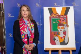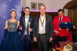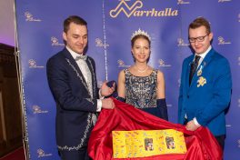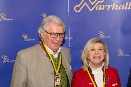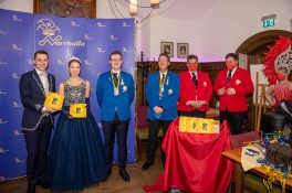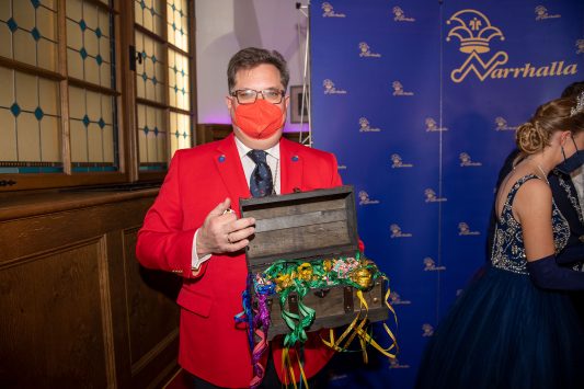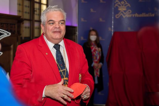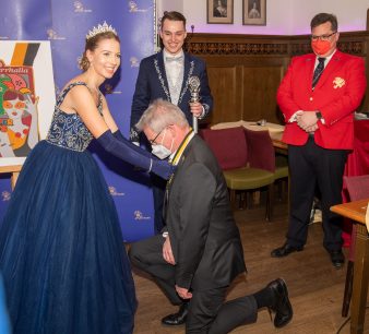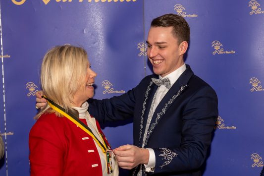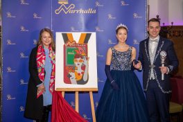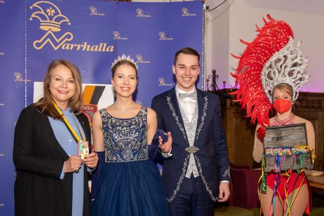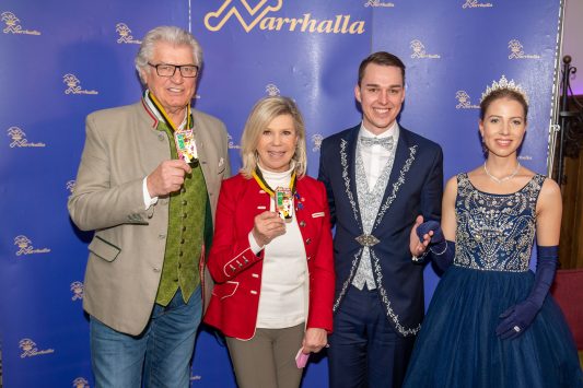 Präsidient Grauer präsentierte im Rahmen einer Pressekonferenz den „Prunkorden am Band 2022“ und das aktuelle Narrhalla Magazin und freute sich, Stadträtin und langjähriges Narrhalla Mitglied Frau Ulrike Grimm, die den diesjährigen Orden entworfen hat, persönlich zu begrüßen.