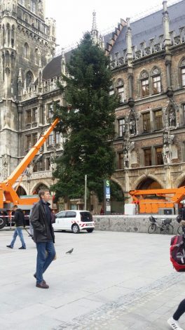Seit heute hat die Landeshauptstadt München wieder einen Christbaum, diesmal gespendet von der Stadt Burghausen. Der Baum vor dem Münchner Rathaus in Nähe der Mariensäule ist 24 Meter hoch und 6 Tonnen schwer. Die Münchner schauen sich „ihren“ Baum immer ganz genau an. Der heurige Baum hat nach ersten Meinungen „Model-Qualität“, denn er ist an der Hüfte zu schlank, so dass schon der Begriff vom „Mager-Baum“ geschaffen wurde. Gerne erinnern sich noch die Münchner und die Samerberger an das Jahr 2009 als ein wunderschöner Christbaum vom Samerberg den Marienplatz verschönte. Im nächsten Jahr 2018 ist die Gemeinde Farchant an der Reihe und wird dann einen Christbaum aus dem Werdenfels nach München bringen.