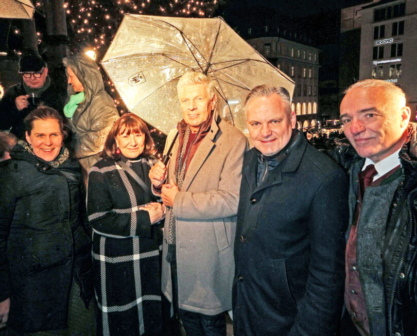 Es weihnachtet wieder in der Münchner Innenstadt. Mit dem obligatorischen Countdown „Drei – zwei – eins – Licht“ haben heute am frühen Abend Oberbürgermeister Dieter Reiter und der Ellmauer Bürgermeister Klaus Manzl das Startsignal für den Münchner Christkindlmarkt gegeben. Dann erstrahlte der Christbaum auf dem Marienplatz im Lichte seiner rund 4.000 energiesparenden LED-Kerzen.