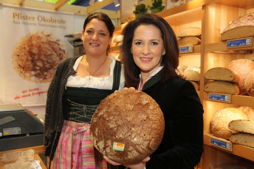 Als Heimat der Genüsse präsentiert sich der Freistaat derzeit auf der Internationalen Grünen Woche in Berlin. In der eigenen Bayernhalle können die Besucher der weltgrößten Ernährungsmesse zehn Tage lang entdecken und probieren, welche kulinarischen Genüsse und unvergleichlichen Spezialitäten der Freistaat zu bieten hat. Auch die Ludwig Stocker Hofpfisterei ist heuer unter dem Berliner Funkturm wieder mit von der Partie. Das Münchner Traditionsunternehmen ist inzwischen auch in der Bundeshauptstadt mit weit mehr als einem Dutzend Filialen und Verkaufsstellen vertreten. Landwirtschaftsministerin Michaela Kaniber schaute bei ihrem Messerundgang am Stand der Ökobrot-Spezialisten aus der Landeshauptstadt vorbei und half Inhaberin Nicole Stocker dabei, die vielfach prämierten Laibe zu vermarkten.
