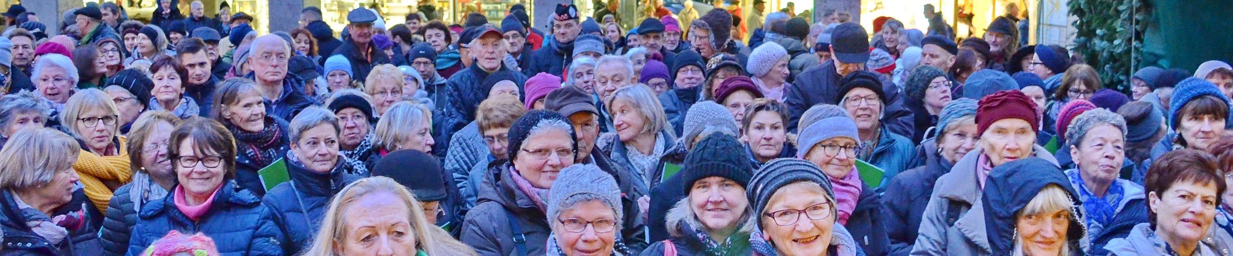 In den vergangenen Jahren haben die aus Funk und Fernsehen bekannten Musikerinnen Traudi Siferlinger und Monika Drasch, unterstützt von Hansi Zeller am Akkordeon, tausende Besucherinnen und Besucher für das gemeinsame Singen auf den Christkindlmarkt begeistert. Aus diesen Live Auftritten hat das Kulturreferat kleine Videosequenzen zu den einzelnen Liedern produziert.