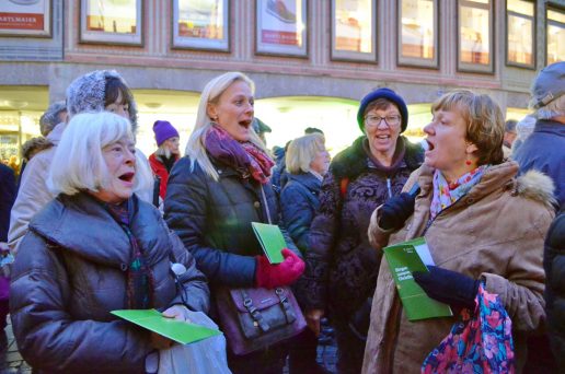 Die Lieder sind alle mit Untertitel versehen und in Gebärdensprache übersetzt. Die eigens für diese Veranstaltungsreihe erstellten grünen Singhefte können kostenlos auch in Großschrift unter www.muenchen.de/singenuntermchristbaum als PDF heruntergeladen und ausgedruckt werden.