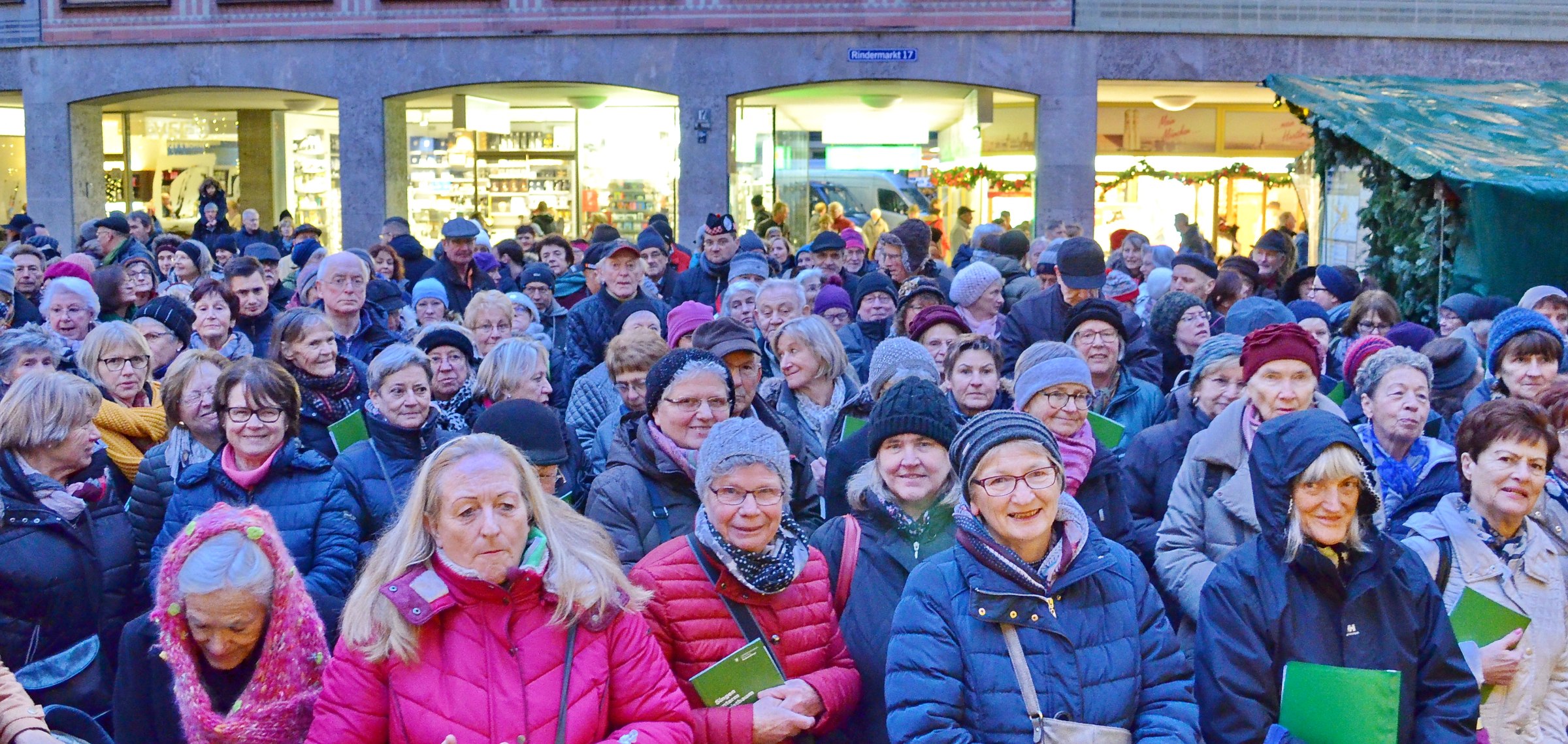 Singen unterm Christbaum: Dichtes Gedränge vor dem Alten Peter in München