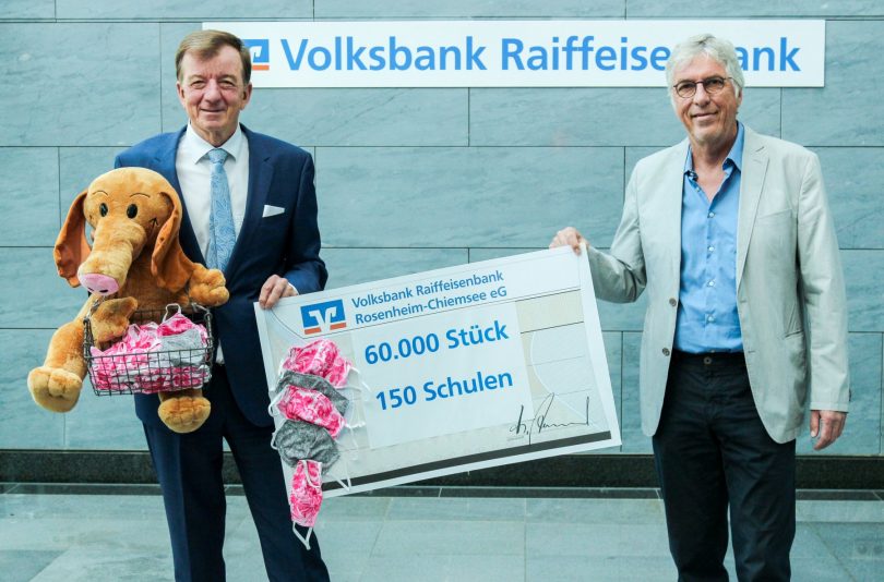 Die Volksbank Raiffeisenbank Rosenheim-Chiemsee und die VR meine Raiffeisenbank mit Sitz in Altötting spendeten Atemschutzmasken an 150 Schulen. Dabei wurde auf Komfort und Farben geachtet, um die Kinder zum Tragen zu motivieren.