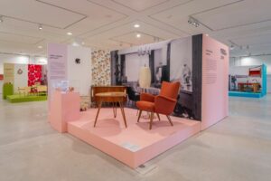 Durch die Ausstellung “Wohntrends in Miniatur” führt der Glentleitner Wissenschaftler Jan Borgmann. Bildquelle: Bezirk Oberbayern, FLM Glentleiten