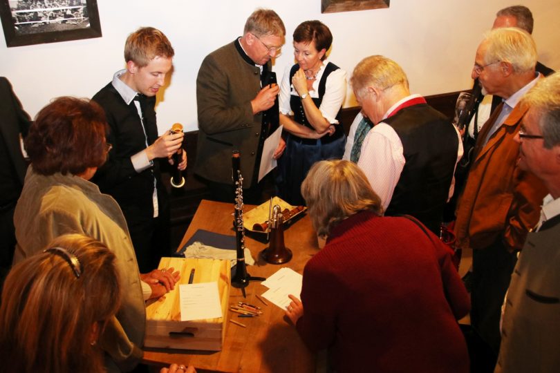 Bernaus Kulturreferentin Michaela Leidel brachte es auf den Punkt, als sie in Vertretung von Bürgermeister Philipp Bernhofer die Anwesenden begrüßte und einen außergewöhnlichen Abend eröffnete. Den Organisatoren sei es gelungen, sehenswerte „Meisterstücke aus Holz“ mit hervorragenden „Meisterstücken fürs Holz“ zusammenzubringen. Sie dankte gleich zu Beginn dem Trachtenverein mit seinem Vorstand Christoph Kaufmann, der für die erste Veranstaltung mit klassischer Musik im Trachtenheim dieses kostenfrei zur Verfügung gestellt hatte. Hans Kurfer, Obermeister der Traunsteiner Schreinerinnung, konnte der Kulturreferentin nur beipflichten, als er die wunderschönen und handwerklich wertvollen Gesellen- und Meisterstücke vorstellte, die an einer Seitenwand des Saales ausgestellt waren: Ein Hängebord mit Klappe, ein Sekretär, ein Schreibtisch mit Kupferverblendungen, eine Truhe in Rüster und ein sehr aufwändiger Küchenkasten konnten vor und nach dem Konzert genauestens in Augenschein genommen werden, was zu den ersten „Ahhs und Ohhs“ führte. In der Pause durften die Zuhörer in einem Quiz vier verschiedene Holzarten von ausgestellten Musikinstrumenten erraten. Keiner der anwesenden Musikbegeisterten und auch kein Schreiner konnte „Bergahorn, Grenadill, Buchsbaum und Mopane“ richtig benennen.