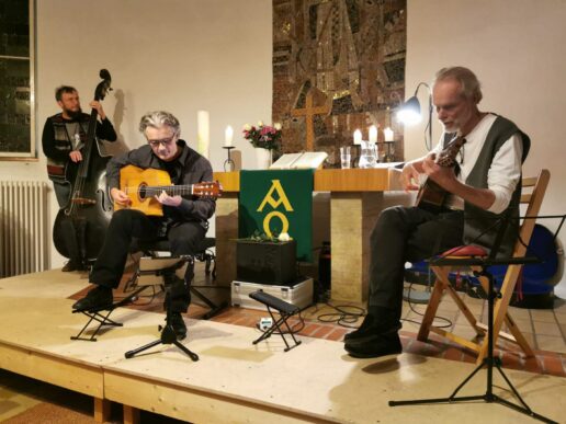 Wer Armin Ruppel und Michael Habecker schon einmal live erlebt hat, weiß, was ihn erwartet: Feine Gitarrenklänge, die Ruhe und eine fast meditative Stimmung verbreiten – Musik, die berührt und zum Innehalten einlädt. Michael Habecker wird sicher auch diesmal wieder mit seinen „bedenk-lichen Worten“ den Abend bereichern und für nachdenkliche wie heitere Momente sorgen.