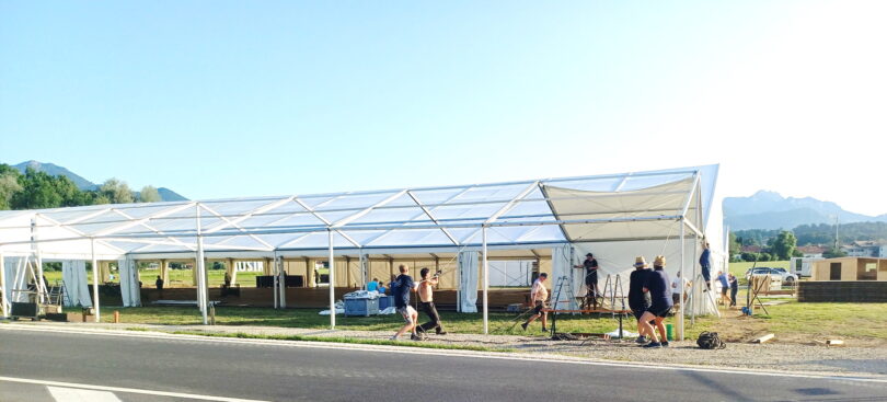 Große Ereignisse werfen ihre Schatten voraus: Das Bezirksmusikfest des Bezirksmusikverbandes für den Chiem- und Rupertigau im Musikbund von Oberbayern und Niederbayern wird von 3. bis 14. Juli in Übersee gefeiert. Zwei Tage lang bauen derzeit jeweils 50 bis 60 freiwillige Helfer das große Festzelt vor wunderbarer Bergkulisse auf der großen Wiese gegenüber dem Musikheim in Übersee auf.