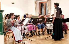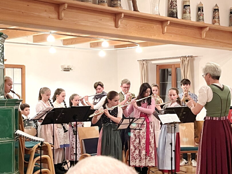 Fotos: Eindrücke von der JHV beim Musikförderverein – 1. Auftritte der Zwergerlkapelle (Leitung Eva-Maria Gruber) und der Jugendkapelle (Leitung Brigitte Buckl) – 2. Erster Vorsitzender Andreas Willmann