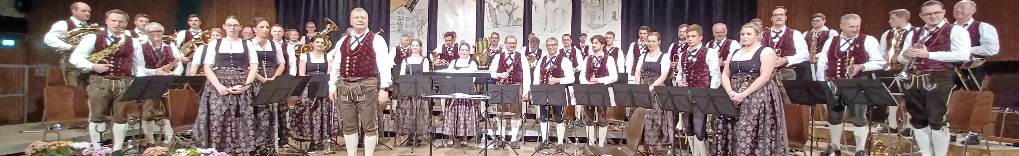 Noch während des ersten Konzertteils überreichte Bezirksdirigent Christoph Danner an Simone Datzmann (Flöte) das Musikerleistungsabzeichen in Silber. Außerdem wurden folgende Musikanten für jeweils 40 Jahren Zugehörigkeit zur Kapelle ausgezeichnet: Hans Paul (Flügelhorn), Michael Leitner (Tenorhorn/Bariton), Joseph von Solemacher (Waldhorn) und nicht zuletzt Dirigent Bernd Eutermoser. Vorstand Georg Spatzier ging in seiner Laudatio auf die großen und vielfältigen Verdienste dieser vier ganz besonderen Musiker ein und sprach ihnen im Namen der gesamten Kapelle ein aufrichtiges Dankeschön aus. Zuletzt wurde auch Georg Spatzier selbst ausgezeichnet, er ist mittlerweile 25 Jahre Mitglied der Kapelle und gleichzeitig 20 Jahre in der Vorstandschaft aktiv.