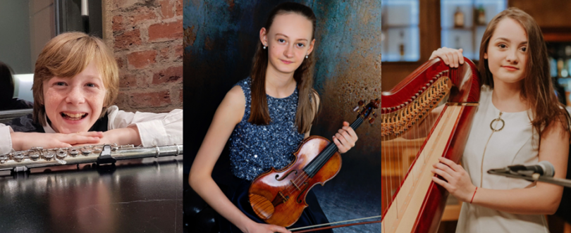 Fabian Egger, Elisabeth Pihusch und Daria-Cristiana Vacaroiu studieren im Precollage Mozarteum Salzburg. Fabian ist gebürtiger Traunsteiner, Elisabeth kommt aus Rosenheim und Daria-Cristiana ist in Bukarest geboren. Alle drei haben bemerkenswertes Talent und konnten dieses in zahlreichen Wettbewerben unter Beweis stellen: Fabian und Elisabeth sind unter anderem Gewinner des Bundeswettbewerbs “Jugend musiziert” und Daria-Cristiana gewann den ersten Preis beim Internationalen Harfenwettbewerb in Limoges.