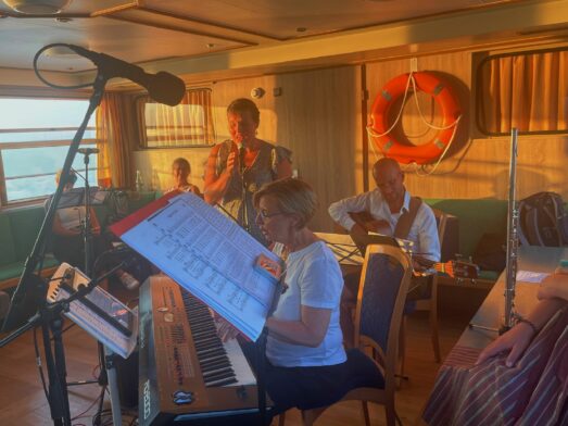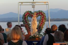 Den dritten Teil der Wallfahrt bildete ein Rosenkranz-Gebet, dabei hielt das Schiff „Edeltraud“ vor der Fraueninsel still. Zum Abschluss bedankte sich Gitte Winkler vom Organisations-Team bei den vielen fleißigen Händen, die die Fahrt möglich machten und die unter anderem auch für den Blumenschmuck um die Fatima-Madonna sorgten.