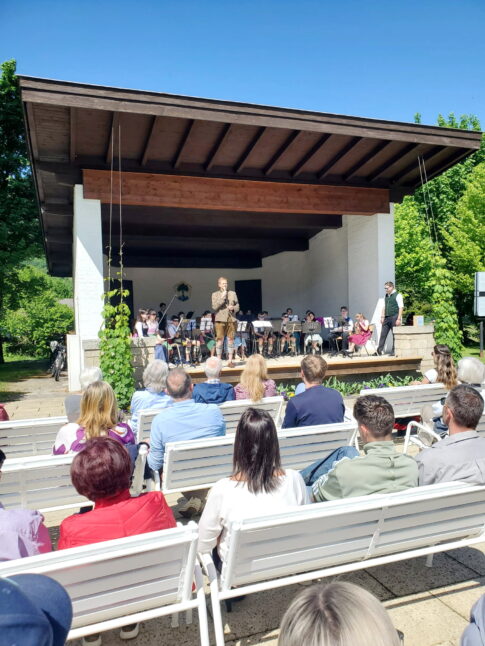 Strahlender Auftakt in den Frühling – Muttertagskonzert im Kurpark Aschau begeistert Publikum – Rosen vom Ersten Bürgermeister Simon Frank überreicht