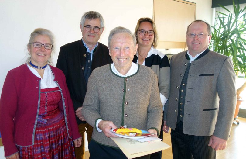 Foto: Hötzelsperger – Georg Aicher gehörte 42 Jahre dem Wildenwarter Kirchenchor an, ihm gratulierten von links Liesi Huber, Franz Riesinger, Anita Aicher und Peter Huber.