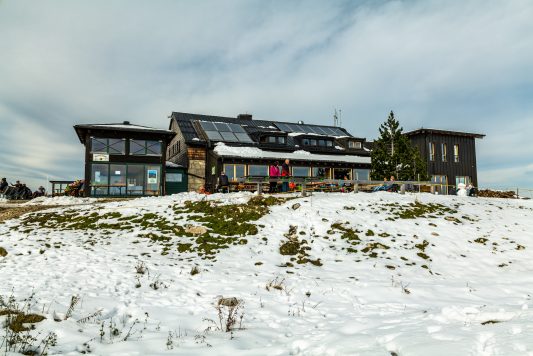 Der Winter hatte nur ein kurzes Intermezzo auf der Hochries, die erste Schneebedeckung des Rosenheimer Hausberbes war nicht von langer Dauer, denn ein Föhnsturm fegte den Schnee wieder weg beziehungsweise ließ ihn schnell und still wieder verschwinden – so zeigt sich die Hochries derzeit wieder in ihrem bunten Herbstkleid. Unsere Bilder zeigen die Hochrieshütte der Alpenvereinssektion Rosenheim vor wenigen Tagen mit frischem Schnee sowie den Föhnsturm im Inntal.