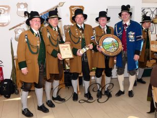 Nach einer gemütlichen Brotzeit, Kaffee und Kuchen im Schützenstüberl wurde von Hauptmann Willy Schmidt und Leutnant Lexa die Siegerehrung durchgeführt. Vorher dankte er noch allen Verantwortlichen für den reibungslosen Ablauf und die gute Bewirtung bei diesem Freundschafts-Schießen.