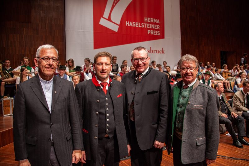 Vom 25. bis 28. Oktober war Innsbruck wieder die Hauptstadt der Alpen in Sachen Volksmusik. Tausende Musikbegeisterte und über 500 Musikantinnen und Musikanten aus dem deutschsprachigen Alpenraum kamen zusammen um beim 23. Alpenländischen Volksmusikwettbewerb/ Herma Haselsteiner-Preis die besten Interpreten zu küren. Beim abschließenden Festabend überreichte Landesrat Mag. Johannes Tratter die begehrten Herma-Haselsteiner-Preise. Drei gingen nach Bayern (Früahdirndl, Zeitlang Gsang, Geigenmusi “hoib und hoib”), einer nach Südtirol (Familienmusik Wallnöfer) und einer nach Nordtirol (Afelder Dreigesang). Untertags musizierten hunderte VolksmusikantInnen in der Innsbrucker Altstadt und im Congress. Der Obmann des Tiroler Volksmusikvereins Peter Margreiter freute sich über den enormen Besucherandrang: „Dieses Wochenende war ein wahres Fest der Volksmusik und es ist eine große Ehre für uns diese Veranstaltung alle 2 Jahre in Innsbruck durchführen zu dürfen!“.
