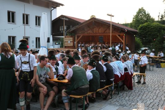 Draußen auf dem Platz zwischen Rathaus und Lamstoahalle sitzen und alle fünfe grad sein lassen: beim Lindenfest des Frasdorfer Trachtenvereins „D´ Lamstoana“ trafen sich jung und alt. Die Musikkapelle Wildenwart spielte den Frasdorfern auf, die Aktiven und die Kinder- und Jugendgruppen des Vereins zeigten den zahlreichen Besuchern ihr Können: schneidige Plattler und Trachtentänze. Ein paar Tage vor Ferienbeginn zeigte die Kindergruppe des Vereins, dass sie in diesem Jahr nicht nur in der Schule, sondern auch beim Trachtenverein viel gelernt hat. Manche Besucher dehnten ihre Erfahrungen mit dem edlen Gerstensaft bis in die späten Stunden aus.