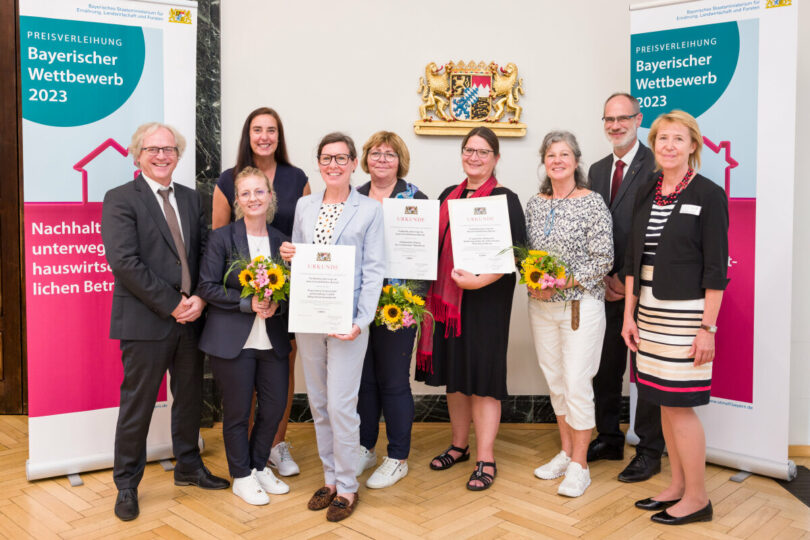 Jeder spricht von Nachhaltigkeit, Hauswirtschaft lebt sie! Das hat der Wettbewerb „Nachhaltig unterwegs im hauswirtschaftlichen Betrieb“ des Kompetenzzentrums Hauswirtschaft mit Sitz in Triesdorf bewiesen. Dabei konkurrierten 38 hauswirtschaftliche Betriebe und Dienstleister, die bereits nachhaltige Maßnahmen in Bereichen wie Reinigung, Wäscherei, Beschaffung oder Entsorgung eingeführt haben, um Auszeichnungen und Preisgeld. Heute wurden die drei Gewinnerbetriebe im Bayerischen Staatsministerium für Ernährung, Landwirtschaft und Forsten ausgezeichnet und erhielten jeweils ein Preisgeld von 1.000 Euro.