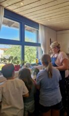 An einem sonnigen Augustvormittag trafen sich die Teilnehmer am Pfarrheim Wildenwart, wo sie von der Wildenwarter Landfrau Maria Riepertinger und ihren Helfern herzlich begrüßt wurden. Das Ferienprogramm “Blütenkekse backen und den Geheimcode auf dem Ei lesen lernen” versprach einen spannenden und kreativen Tag.Zunächst wurden essbare Blüten gesammelt, bevor die Kinder einen feinen Mürbeteig zubereiteten. Mit großer Freude kneteten, formten und stachen sie die Kekse aus. Besonders viel Spaß hatten sie beim Verzieren der Kekse mit Weiß- und Rotklee, Kamille, Schafgarbe, Borretsch, Lavendel, Rosen und vielen weiteren Blüten.Natürlich durften die köstlichen Kunstwerke gleich probiert werden. Nebenbei lernten die Kinder auch, wie sie anhand des Geheimcodes auf den Eiern erkennen können, dass die Hühner am Wastlhof in einem großen Garten leben.Zum Abschluss erhielt jedes Kind ein kleines Geschenk und ein Mehrwegglas voller selbstgebackener Kekse, um auch zu Hause noch weiterzunaschen.