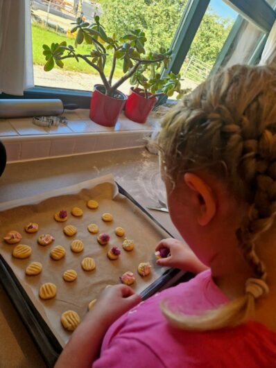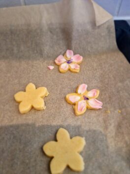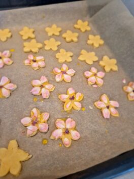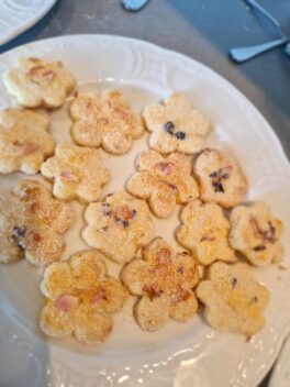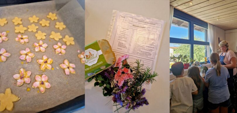 Blütenkekse mit essbaren Blüten und regionalen Zutaten backen und dabei lernen, was der “Geheimcode” auf dem Ei verrät – dieses Angebot wurde im Rahmen des Ferienprogramms der Gemeinde Frasdorf für Kinder veranstaltet.