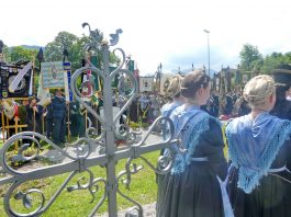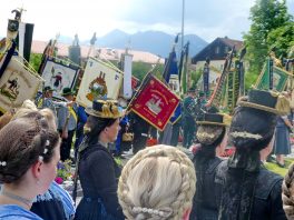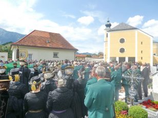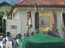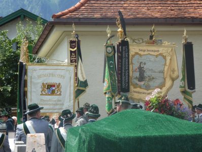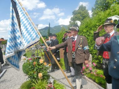 Vor wenigen Wochen zeigte der Verstorbene noch seine tiefe Verbundenheit zu uns Trachtlern, in dem er ein Fahnenband für die neu geweihte Standarte stiftete, das seine Frau in Vertretung von ihm an die Standarte heftete.