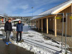 Der Bau der Einrichtungen vom „Naturerlebnis Wistlberg“ nahe Finsterau geht in großen Schritten voran. Nicht nur die Außenhülle der barrierefreien Toilette am Skistadion ist fertig. Auch das Gebäude des Nationalpark Cafés steht und der Innenausbau ist in vollem Gange. Nationalparkleiterin Ursula Schuster und Heiner Kilger, zweiter Bürgermeister der Gemeinde Mauth, konnten sich bei einem Rundgang selbst ein Bild vom Fortschritt der Baumaßnahmen machen.