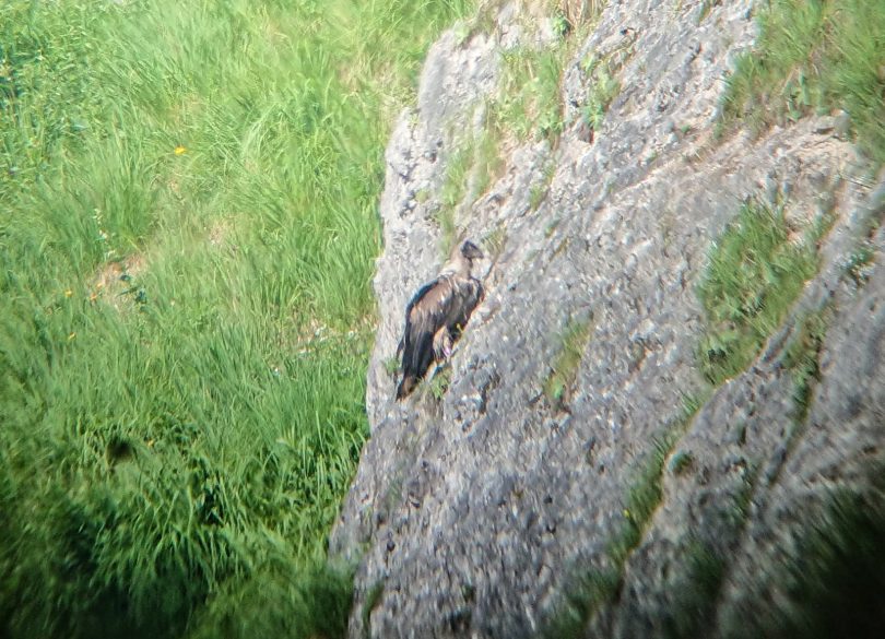 In den vergangen vier Wochen haben die beiden Bartgeierweibchen ihr Flugtraining in der gesicherten Auswilderungsnische von Tag zu Tag intensiviert. Beide waren am Tag ihrer Auswilderung am 10. Juni nicht flugfähig, hatten sich aber sehr gut entwickelt und sowohl an Gewicht als auch an Flügelspannweite zugelegt. „Die meisten ausgewilderten jungen Bartgeier machen zwischen dem 120. und 125. Lebenstag ihren Jungfernflug. Bavaria konnte es aber wohl nicht mehr erwarten und startete schon mit 119 Tagen in die Freiheit“, freut sich Jochen Grab. Im Anschluss an ihren Erstflug bewegte sich Bavaria erstaunlich leichtfüßig durchs Gelände. Junge Bartgeier müssen vor dem ersten Ausflug nicht nur ihre Flügel, sondern auch ihre Beine kräftig trainieren. Bei Gleitstrecken von zunächst nur 50 bis 100 Metern können sie gerade in der ersten Woche nach der Landung nicht immer gleich wieder starten. Stattdessen müssen sie regelmäßig mühsam erst den Berg zum nächsten geeigneten, höhergelegenen Abflugpunkt wieder aufsteigen, um erneut in die Luft zu starten. „Das sind jetzt noch keine Präzisionsflieger. Jeder Tag mehr Entwicklung in der Nische bringt Vorteile, denn umso stressfreier wird es für alle Beteiligten. Je später sie ausfliegen, umso eleganter geht es und umso sicherer sind sie vor möglichen Bedrohungen, weil sie dann auch nicht mehr so lange in Wiesen herumsitzen und nur wenig fliegen“, weiß LBV-Biologe Wegscheider.