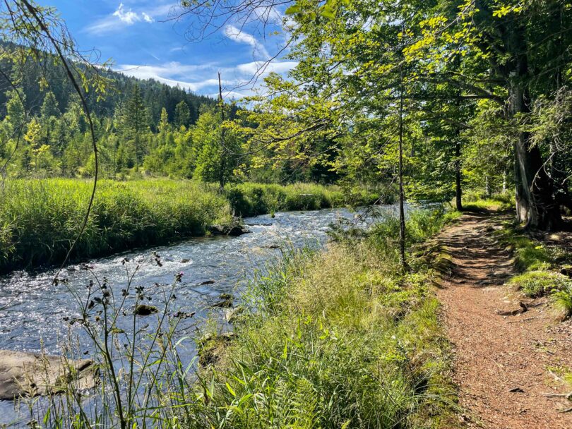 Im Rahmen der Sonderführungsreihe „Nationalpark exklusiv“ wandert Waldführerin Rosemarie Schreiner am Sonntag, 8. Juni, auf dem Flusswanderweg am Großen Regen. Der Weg ist aktuell im Rennen um den Titel Deutschlands schönster Wanderweg 2025. Kein Wunder, denn der Pfad direkt am Ufer ermöglicht herrliche Einblicke in die nasse Wildnis am Nationalparkrand.