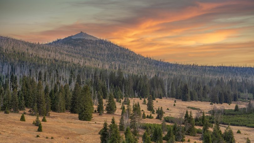 Der Lusen ist eines der prägendsten Landschaftselemente der grenzüberschreitenden Nationalparks. Hier sieht man den 1373 Meter hohen Berg von der tschechischen Infostelle am Březník aus. (Foto: Patrick Leitner)