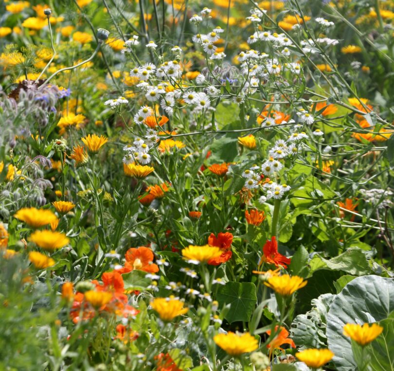 BHM_Naturkosmetik.jpg: Borretsch, Kamille, Ringelblume und Kapuzinerkresse gedeihen im heimischen Garten. Aus diesen Kräutern lassen sich leicht Naturkosmetika herstellen © Bezirk Oberbayern, Archiv BHM, Gerhard Nixdorf.