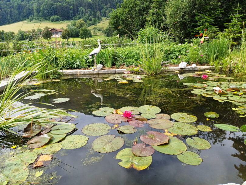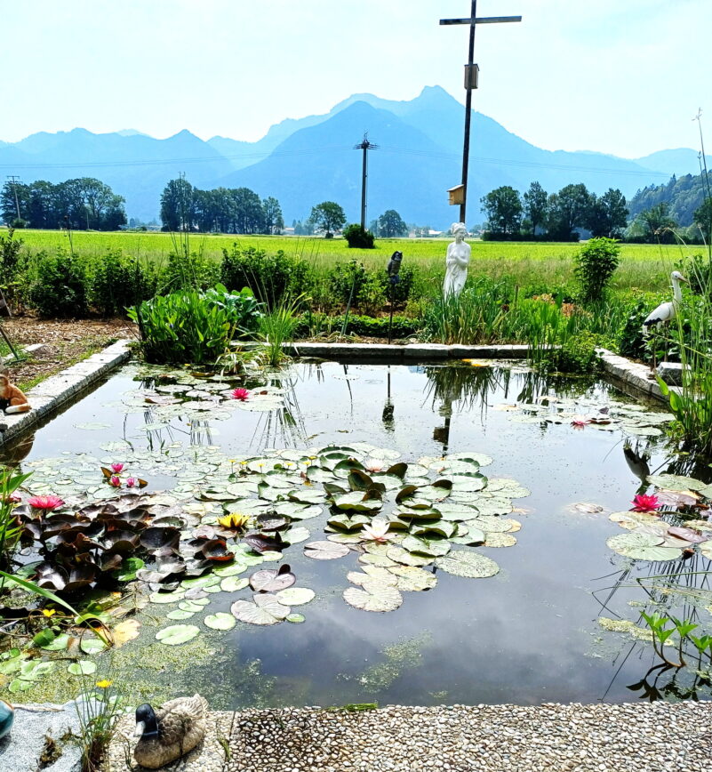 Ein unwahrscheinlich buntes Biotop mit naturnah angelegtem Teich mit natürlichem Lebensraum für Fische, Insekten, bunten Seerosen und anderen Wasserpflanzen kann im Garten von Felix Laubhuber (den meisten nur bekannt als „der Fex“), am Ortsrand von Grassau besichtigt werden.