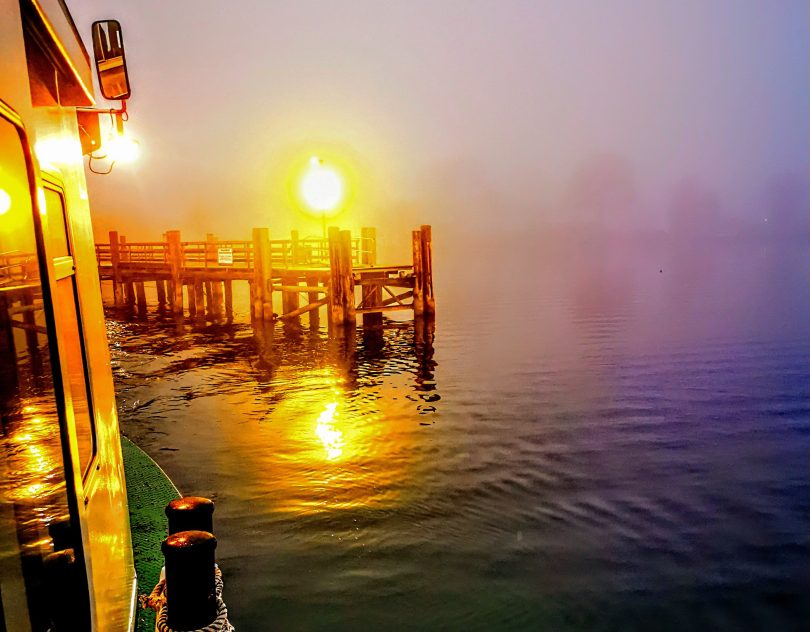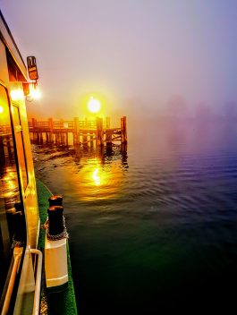 Gut dass es bei den Schiffen der Chiemsee-Schifffahrt einen Radar gibt. Denn ansonsten hätten es die Kapitäne oft schwer, in den morgendlichen Stunden und bei Nebel die richtige Anlegestelle zu finden. Wie unsere aktuellen Bilder zeigen, präsentieren sich See und Steg am Morgen in einem passenden Adventlicht.